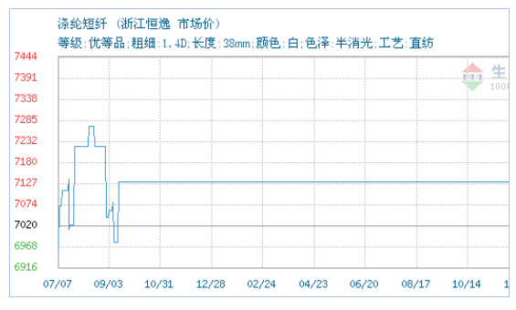 02月02日浙江恒逸集团关于涤纶短纤的报价为7400元/吨。涤纶短纤的规格:等级:优等品;粗细:1.4D;长度:38mm;颜色:白;色泽:半消光;工艺:直纺。该报价有效期为3天。报价提供方:上海棉联电子商务有限公司。