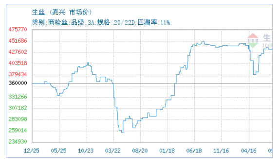 02月08日中国茧丝绸交易市场(嘉兴)关于生丝的报价为455700元/吨。生丝的规格:类别:商检丝;品级:3A;规格:20/22D;回潮率:11%;。该报价有效期为3天。报价提供方:中国茧丝绸交易市场(嘉兴)。