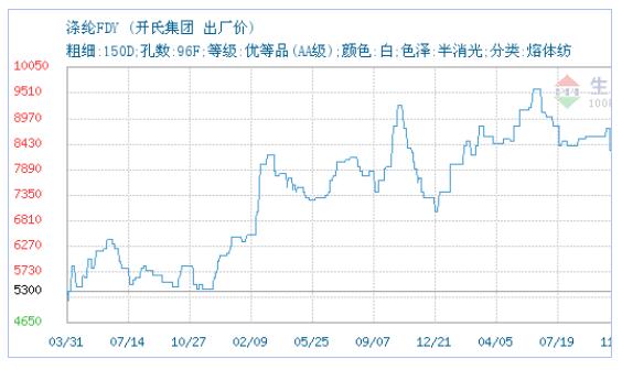 02月14日开氏集团关于涤纶FDY的报价为8150元/吨。涤纶FDY的规格:粗细:150D;孔数:96F;等级:优等品(AA级);颜色:白;色泽:半消光;分类:熔体纺。该报价有效期为3天。报价提供方:杭州开氏化纤销售有限公司。