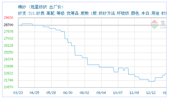 02月17日山东冠县冠星纺织有限责任公司关于棉纱21S的报价为22600元/吨。棉纱21S的规格:纱支:21S;纱质:高配;等级:优等品;股数:1股;纺纱方法:环锭纺;颜色:本白;用途:针织。该报价有效期为3天。报价提供方:山东省冠星纺织集团有限公司。
