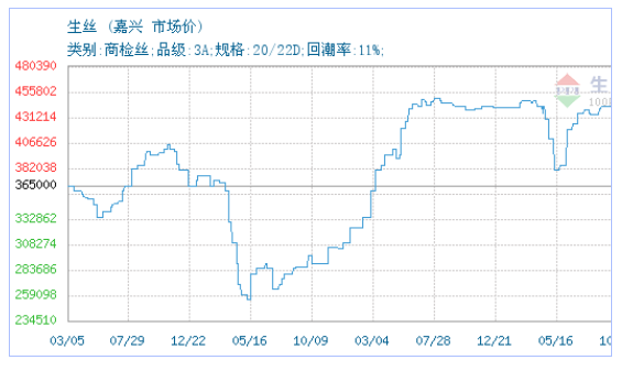 03月06日中国茧丝绸交易市场(嘉兴)关于生丝的报价为449100元/吨。生丝的规格:类别:商检丝;品级:3A;规格:20/22D;回潮率:11%;。该报价有效期为3天。报价提供方:中国茧丝绸交易市场(嘉兴)。