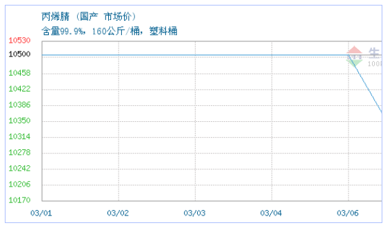 03月06日国产关于丙烯腈的报价为10200元/吨。丙烯腈的规格:含量99.9%,160公斤/桶,塑料桶。该报价有效期为1天。报价提供方:平潭综合实验区永合化工有限责任公司。