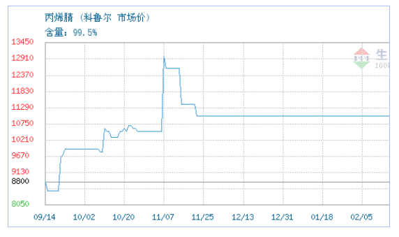 03月09日科鲁尔关于丙烯腈的报价为11000元/吨。丙烯腈的规格:含量:99.5%。该报价有效期为1天。报价提供方:湖南齐鲁新材料科技有限公司。