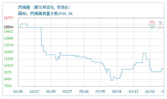 03月09日斯尔邦石化关于丙烯腈的报价为10300元/吨。丙烯腈的规格:国标;丙烯腈质量分数≥99.5%。该报价有效期为7天。报价提供方:扬州凯丰化工有限公司。