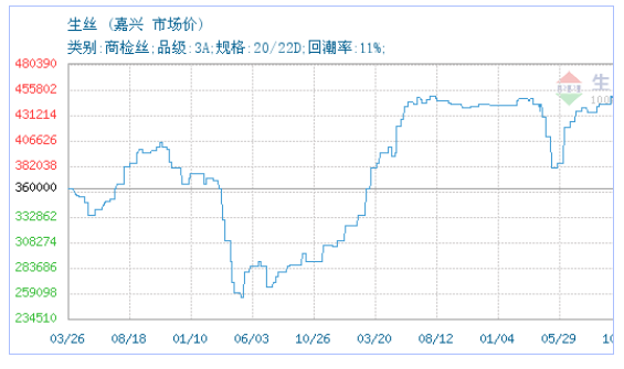 03月14日中国茧丝绸交易市场(嘉兴)关于生丝的报价为454500元/吨。生丝的规格:类别:商检丝;品级:3A;规格:20/22D;回潮率:11%;。该报价有效期为3天。报价提供方:中国茧丝绸交易市场(嘉兴)。