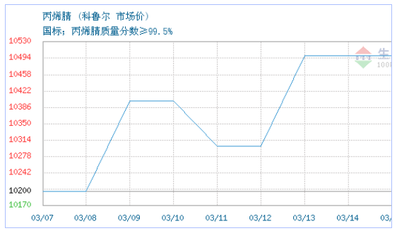 03月16日科鲁尔关于丙烯腈的报价为10200元/吨。丙烯腈的规格:国标;丙烯腈质量分数≥99.5%。该报价有效期为1天。报价提供方:安徽省维创化工有限公司。