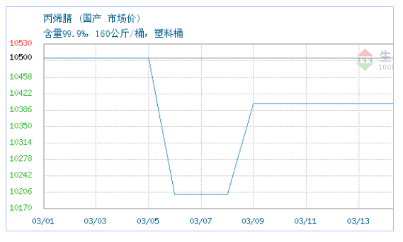 03月16日国产关于丙烯腈的报价为10400元/吨。丙烯腈的规格:含量99.9%,160公斤/桶,塑料桶。该报价有效期为1天。报价提供方:平潭综合实验区永合化工有限责任公司。