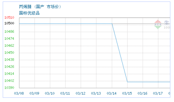 03月20日国产关于丙烯腈的报价为10400元/吨。丙烯腈的规格:国标优级品。该报价有效期为1天。报价提供方:山东宏洋化学有限公司。