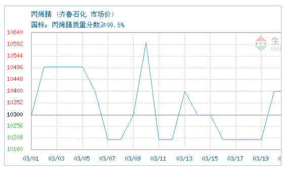 03月23日齐鲁石化关于丙烯腈的报价为10400元/吨。丙烯腈的规格:国标;丙烯腈质量分数≥99.5%。该报价有效期为1天。报价提供方:安徽铠天化工产品有限责任公司。