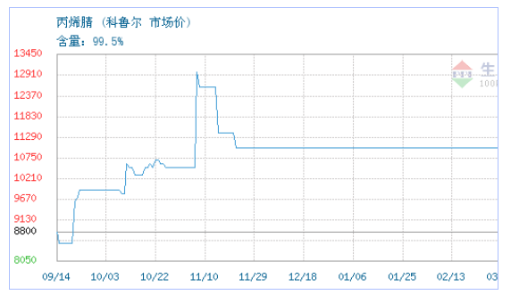 03月24日科鲁尔关于丙烯腈的报价为11000元/吨。丙烯腈的规格:含量:99.5%。该报价有效期为1天。报价提供方:湖南齐鲁新材料科技有限公司。