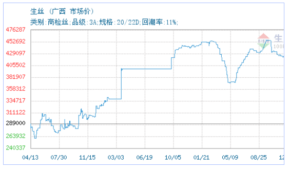 03月27日广西大宗茧丝交易市场关于生丝的报价为436500元/吨。生丝的规格:类别:商检丝;品级:3A;规格:20/22D;回潮率:11%;。该报价有效期为3天。报价提供方:广西大宗茧丝交易市场。