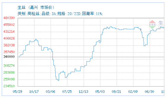 04月07日中国茧丝绸交易市场(嘉兴)关于生丝的报价为442500元/吨。生丝的规格:类别:商检丝;品级:3A;规格:20/22D;回潮率:11%;。该报价有效期为3天。报价提供方:中国茧丝绸交易市场(嘉兴)。