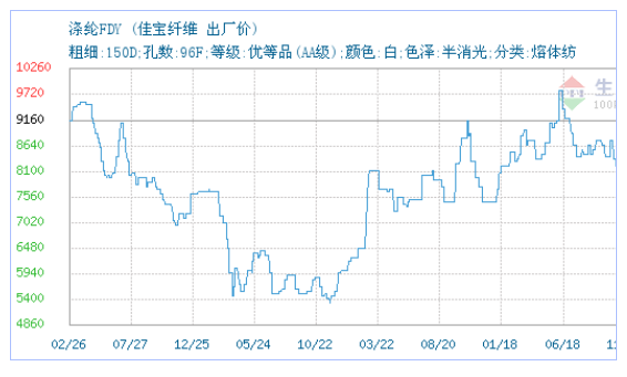 04月12日浙江佳宝新纤维集团有限公司关于涤纶FDY的报价为8360元/吨。涤纶FDY的规格:粗细:150D;孔数:96F;等级:优等品(AA级);颜色:白;色泽:半消光;分类:熔体纺。该报价有效期为3天。报价提供方:浙江佳宝新纤维集团有限公司。