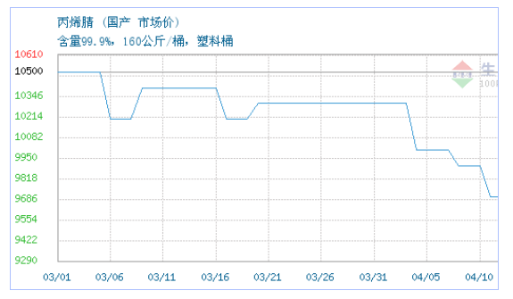 04月17日国产关于丙烯腈的报价为9400元/吨。丙烯腈的规格:含量99.9%,160公斤/桶,塑料桶。该报价有效期为1天。报价提供方:平潭综合实验区永合化工有限责任公司。