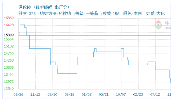 04月18日潍坊红华纺织有限公司关于32S涤纶纱的报价为12900元/吨。32S涤纶纱的规格:纱支:32S ;纺纱方法:环锭纺 ;等级:一等品 ;股数:1股 ;颜色:本白 ;纱质:大化 ;。该报价有效期为3天。报价提供方:潍坊红华纺织有限公司。
