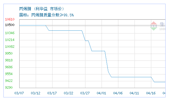 04月26日利华益关于丙烯腈的报价为9600元/吨。丙烯腈的规格:国标;丙烯腈质量分数≥99.5%。该报价有效期为1天。报价提供方:潍坊义信化工有限公司。