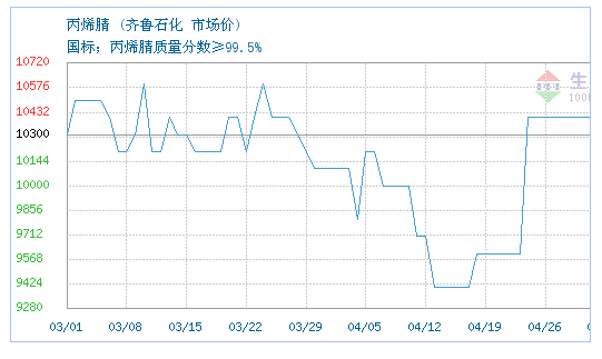 05月09日齐鲁石化关于丙烯腈的报价为10400元/吨。丙烯腈的规格:国标;丙烯腈质量分数≥99.5%。该报价有效期为1天。报价提供方:安徽铠天化工产品有限责任公司。