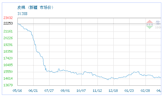 05月15日新疆地区关于皮棉的报价为15953元/吨。皮棉的规格:3128B。该报价有效期为1天。报价提供方:新疆市场。