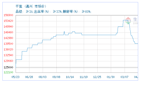 05月22日中国茧丝绸交易市场(嘉兴)关于干茧的报价为139700元/吨。干茧的规格:品级: ≥3A;出丝率(%): ≥32%;解舒率(%): ≥60%;。该报价有效期为3天。报价提供方:中国茧丝绸交易市场(嘉兴)。