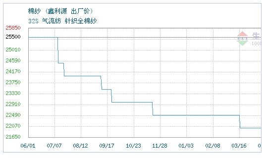 05月25日鑫利源关于棉纱的报价为22200元/吨。棉纱的规格:32S 气流纺 针织全棉纱。该报价有效期为3天。报价提供方:高唐县鑫星棉纺织有限公司。