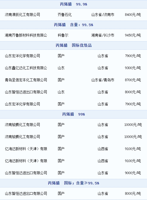 丙烯腈商品报价动态