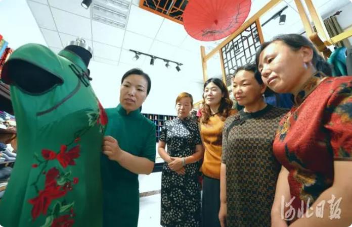 京绣也称宫绣,是中国一门古老的传统刺绣工艺,燕京八绝之一,2014年入选第四批国家非物质文化遗产名录。近年来,该县依托当地服装企业,建立非遗文化基地,积极引进传统京绣技艺,并将其与旗袍制作有机融合,免费为当地留守妇女提供京绣技能培训,让传统京绣焕发了新活力。
