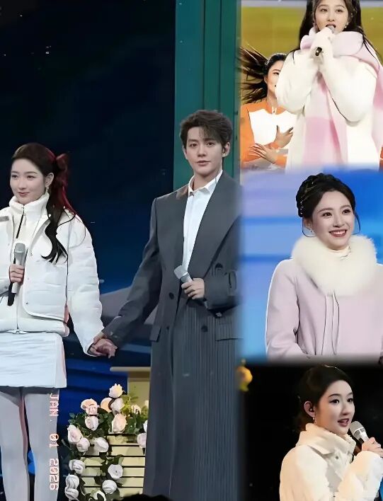 女主持的同色系毛绒披肩、修身毛呢外套,男主持的加绒打底、挺括大衣,既抵御了严寒,又不失舞台应有的精致感。当镜头捕捉到主持人领口沾着的雪屑、与观众呼应的温暖笑容,这些充满生活气息的细节,远比强撑的优雅更具感染力。