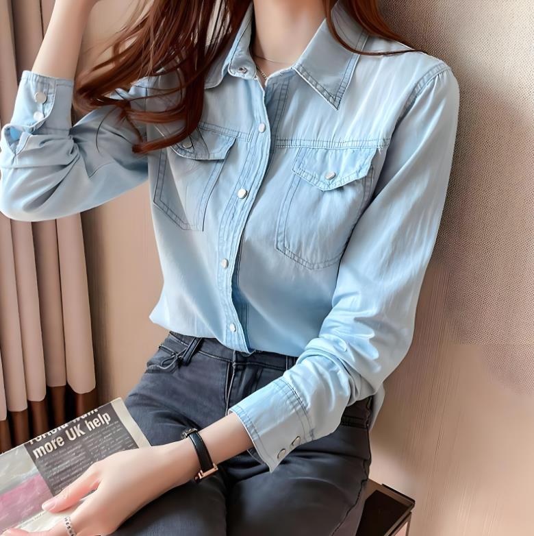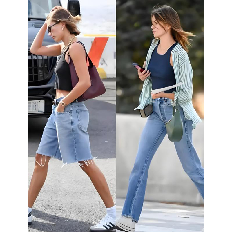 最推荐的是浅蓝色牛仔单品,经过水洗做旧的牛仔衬衫,袖口随意挽起两圈,走在阳光下时,布料上的磨白纹路仿佛能反射阳光。