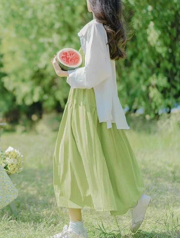 淡绿色是夏日里最会呼吸的色彩。像刚剥开的青提果肉般的浅绿,带着水汽的朦胧感,穿在身上仿佛把清晨的竹林搬进了钢筋森林。