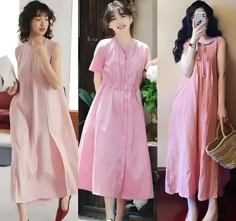 带着灰度的藕粉、像樱花飘落时的淡粉、加了冰的蜜桃粉,这些 “降温粉” 自带柔光滤镜,穿上身如同把半杯冰镇果汁泼在了身上。