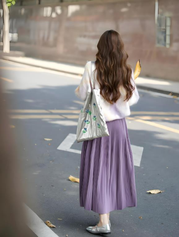 像被晨露打湿的薰衣草般的浅紫,带着淡淡的灰度,穿在身上仿佛能闻到干燥花束的清香。