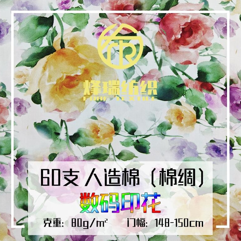 60支梭织人造棉9088布料面料绵绸棉绸数码印花实力工厂来图来样