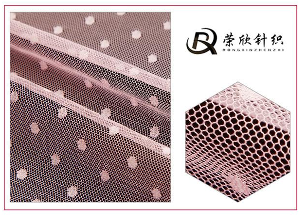 JF122 厂家直销涤纶 低弹小圆点粉色网布 时尚针织女装